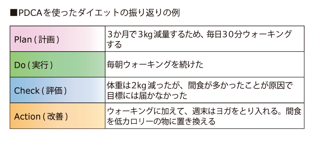 - 実践:期限や頻度など、具体的なアクションを具体的に決める。